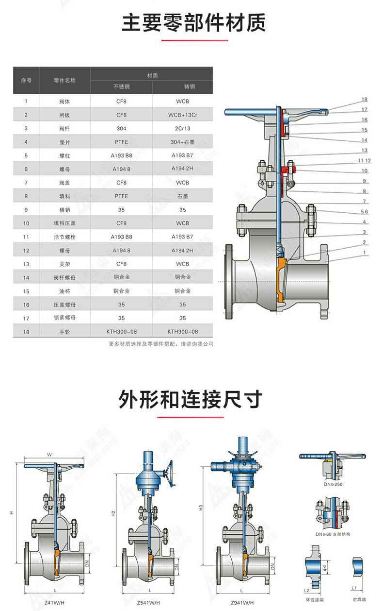 Z41型不锈钢闸阀,为三亚代丰汽车配件配送有限公司自主研发生产。本产品是一种最常见的启闭阀,利用闸板的上下工作来接通(全开)和截断(全关)管道中的流体介质。此类闸阀广泛用于自来水、污水、建筑、石油、化工、食品、医药、轻纺、电力、船舶、冶金、能源系统等体管线上作为调节和截流装置使用。
